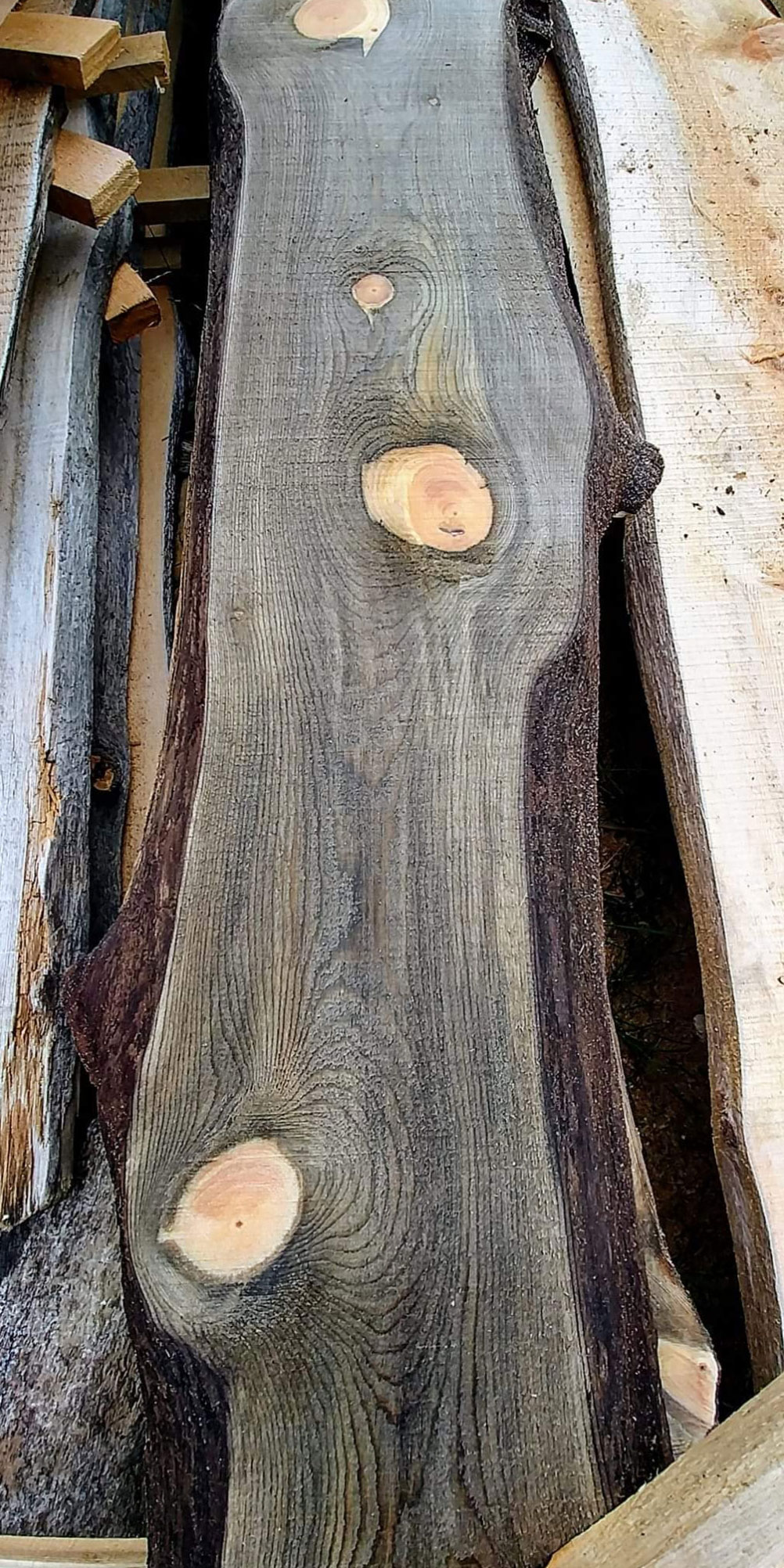 This ensures the lumber has longevity because it has come from old growth forestS - the ring count is 3x more dense than currently milled timber. The wood has developed unique colouring from laying in the sediment and is almost completely sap free.